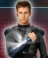 In "Pack-Man", Charlie (as Aaron) told Emma to hug him and activated his invisibility to hide from an agent. When the agent was gone, they turned visible again and was still hugging eachother. Then they realised what they where doing and stood back. Aaron told Emma to thank him for saving but she said although she was the one invented the invisibility suit.